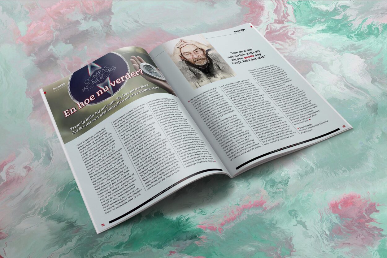 | Ik heb zo met hem te doen. Mijn patiënt is eind 70. Ruim 10 jaar geleden heeft hij een groot hartinfarct gehad. Hierna hebben zich complicaties voorgedaan met als gevolg een volledige hoge dwarslaesie. Darmen gingen problemen opleveren; hiervoor kreeg hij een stoma. Het is een forse man die destijds nog erg actief was. En ondanks alle goedbedoelde adviezen heeft hij in de loop der jaren twee forse decubituswonden opgelopen. De diepste zit er al een jaar of vijf. Precies in zijn bilnaad, zo diep als mijn pink. In het verleden was er bij toucheren bot voelbaar, maar inmiddels is daar wel weefsel overheen gegroeid. Ook heeft hij flinke bloedingen uit deze wond gehad. Maar, zoals ik al schreef, momenteel is het rustig ondanks weinig genezing. In deze wond gaat (na spoelen met een spuit) een antibacterieel middel en een gaaskompres met dezelfde werking, om het vocht op te vangen. We hebben veel uitgeprobeerd, en uiteindelijk blijkt dit het beste comfort te geven. Hij zit op een absorberend kompres, wat we niet fixeren om de huid te ontzien. De tweede wond levert meer problemen op en zit op de tuber (zitknobbel). De randen zijn compleet verlittekend en op de bodem ligt stug geel weefsel wat niet te debrideren valt.