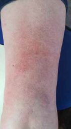Het ene been was er erger aan toe dan het andere. Er was oedeem aanwezig rond beide enkels. Mevrouw had geen pijn en ook geen koorts. De rode kleur werd iedere dag een klein beetje feller en iets meer uitgesproken. In eerste instantie zijn deze casus en foto niet zo ‘schokkend’, maar ik was toch blij dat er aan de bel werd getrokken.